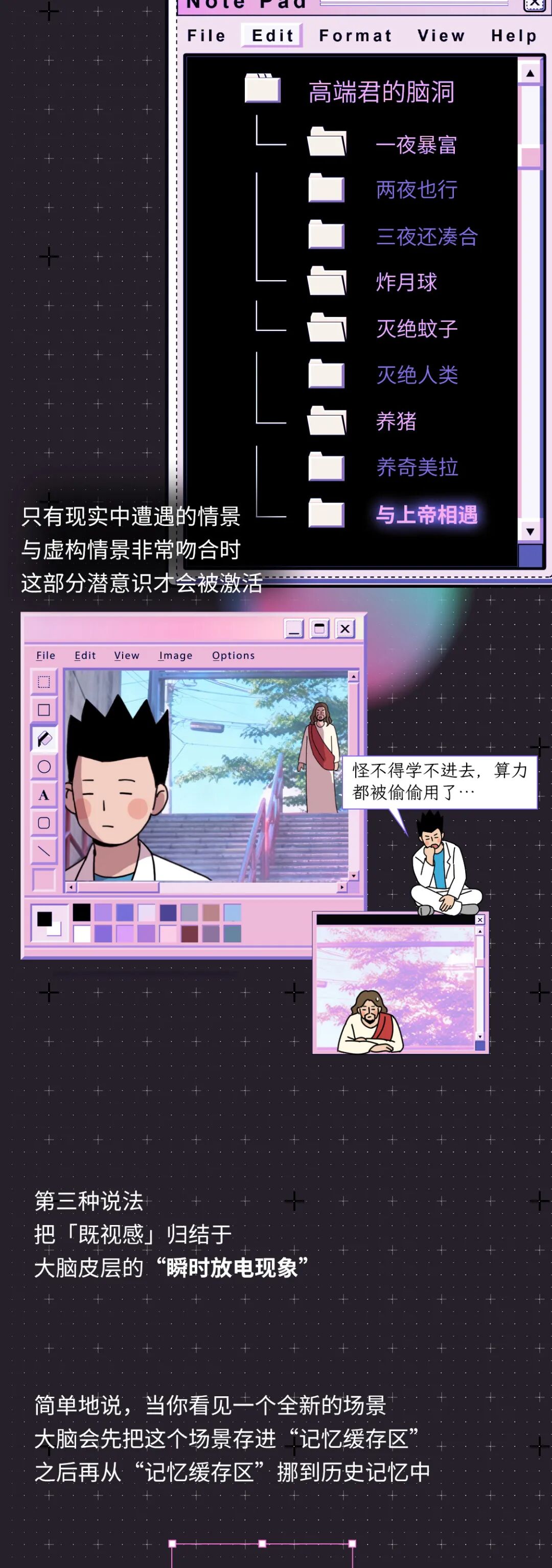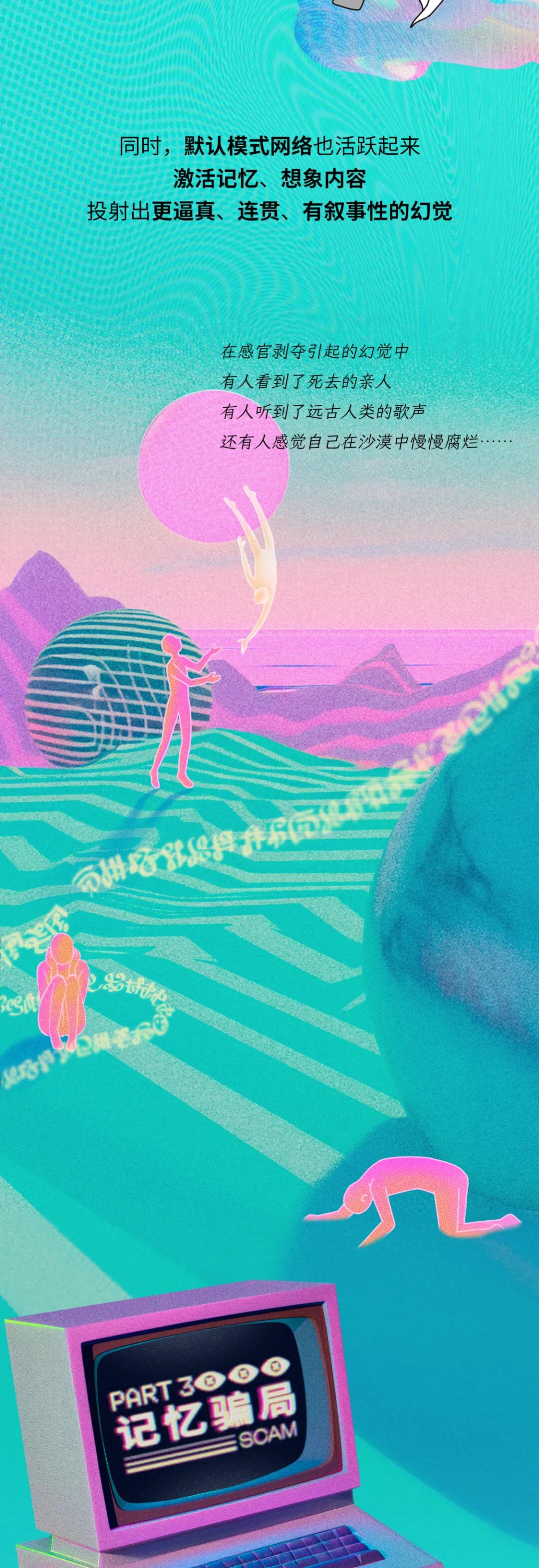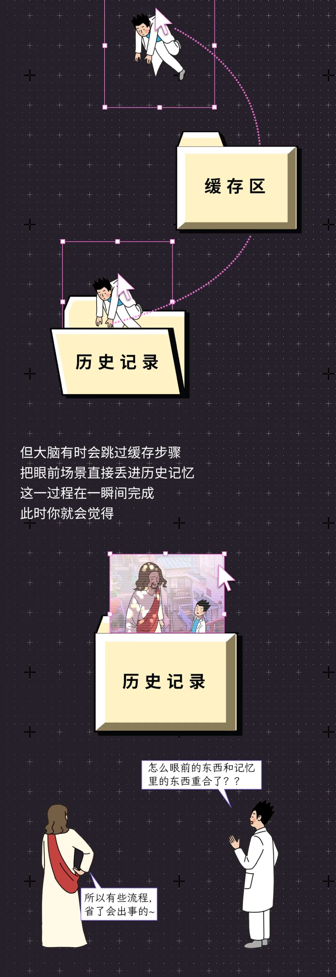· 我们吃饭时,“手拿筷子”的触觉、“眼睛观察饭菜”的视觉、“鼻子嗅饭香”的嗅觉……这些感觉的传播介质和速度都不一样,甚至差别很大,但我们竟然觉得这些感觉是同时发生的,这其实也是大脑的一个小小骗局~