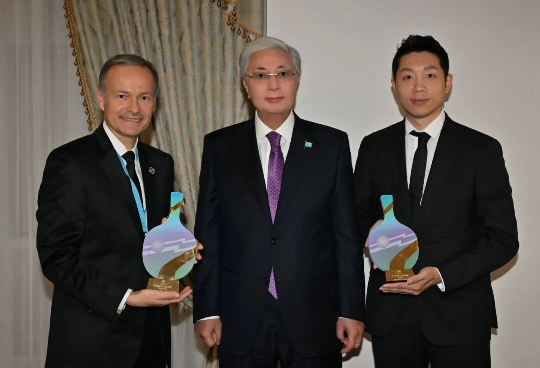 许昕与哈萨克斯坦总统托卡耶夫亲切交流