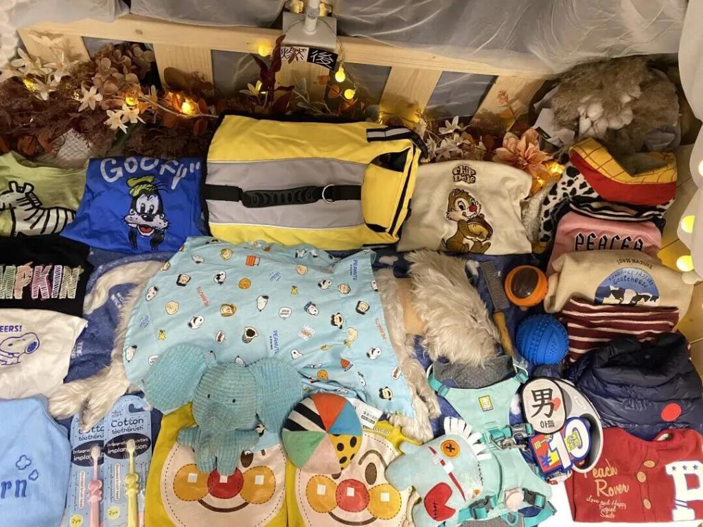 ▲ Papi 葬礼上,Penny 把它生前用过的物品铺在它周围。 受访者供图