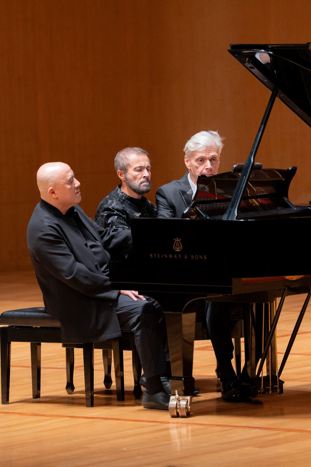 孔祥东惊喜现身现场。三位钢琴家以六手联弹的形式,演绎了拉赫马尼诺夫《浪漫曲》。