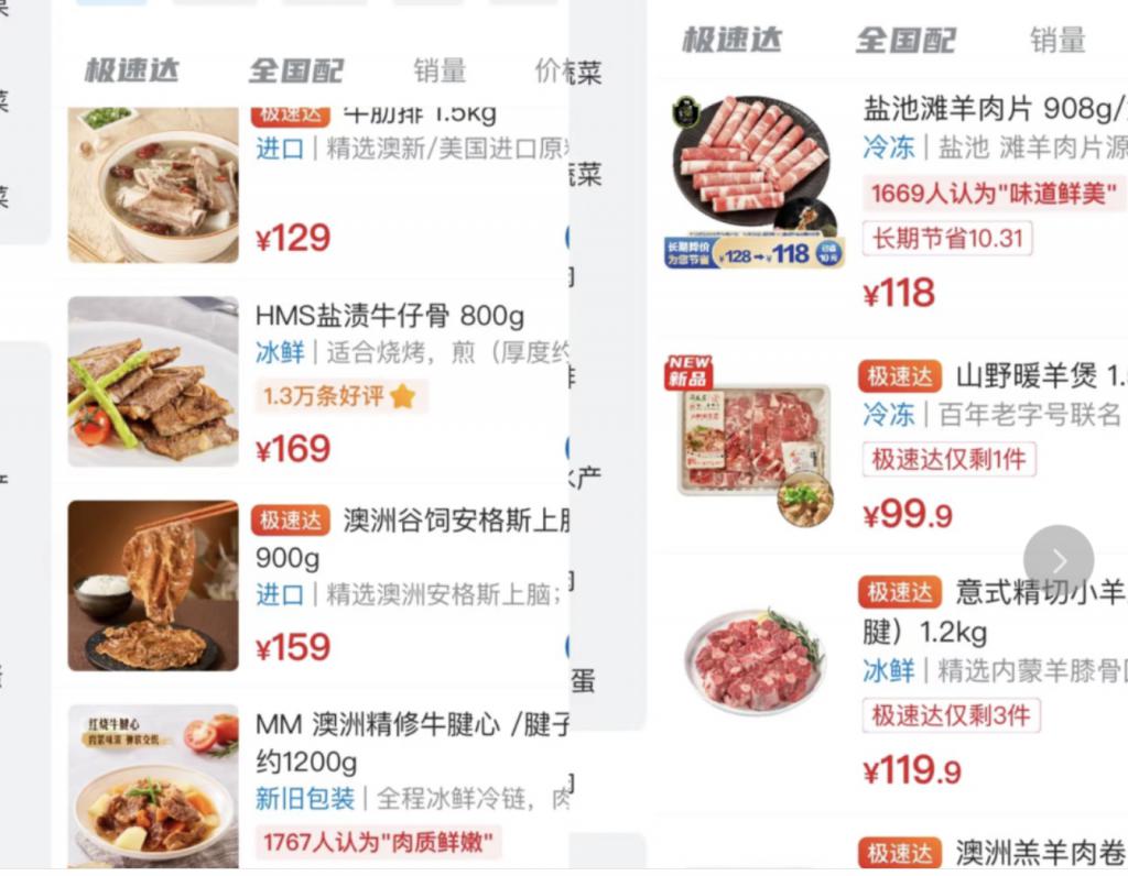 不仅如此,一些原本展示生鲜肉类的商品图中,竟直接使用了烹饪后的熟食成品图。