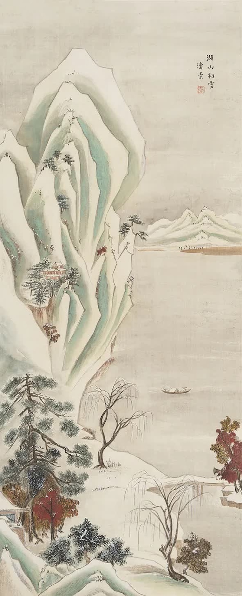 潘素的艺术成就则主要集中在山水画上。早年,张伯驹发现潘素在绘画上的天赋后,曾请名师教其作山水画。后来,潘素潜心钻研隋唐两宋工笔重彩画法,晚年更是四处游历,细细研究山水雪景。