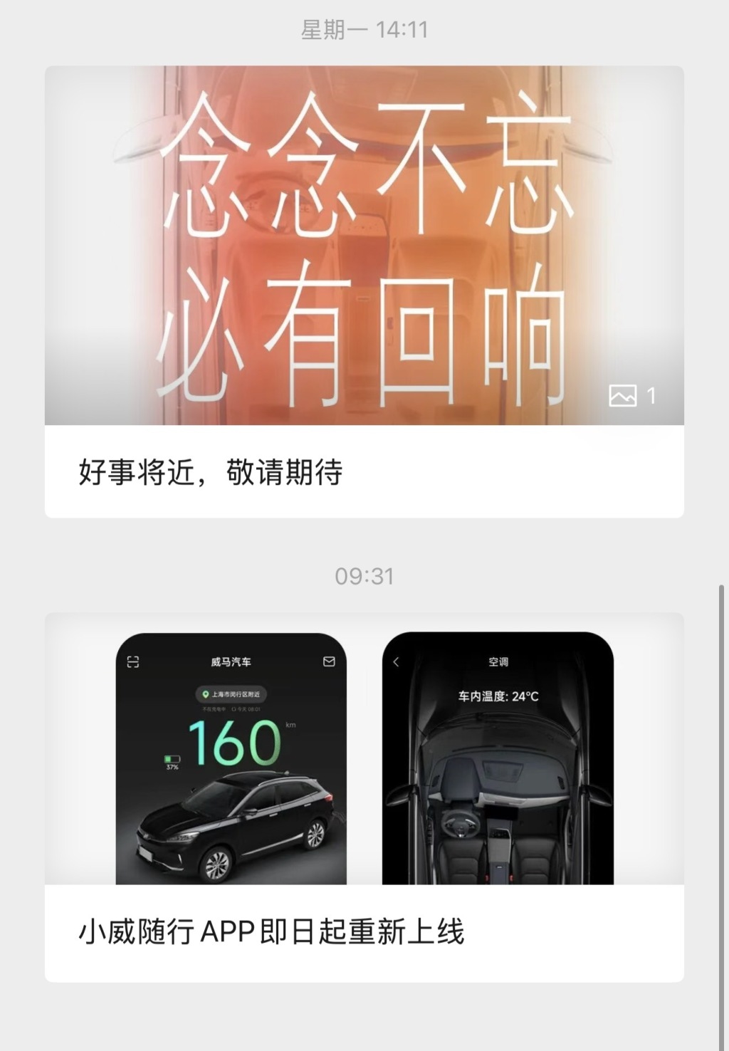威马汽车复活?宣布“好事将近”又后删除海报,车机互联APP重新上线
