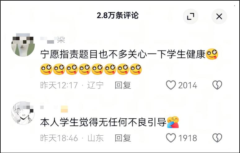 结果很多网友不买账,讽刺宁愿管题目,也不多关心孩子心理健康。