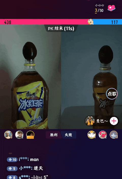 最后你会发现牢大占领了直播间,然后没人愿意和冰红茶打 PK。