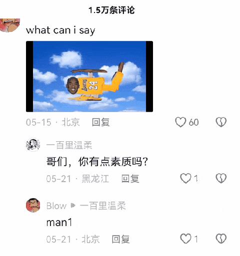不是说不能调侃科比,不是说科比很完美,但你玩梗非得搞 " 直升机坠亡 " 这些元素,是不是太恶毒了呢。