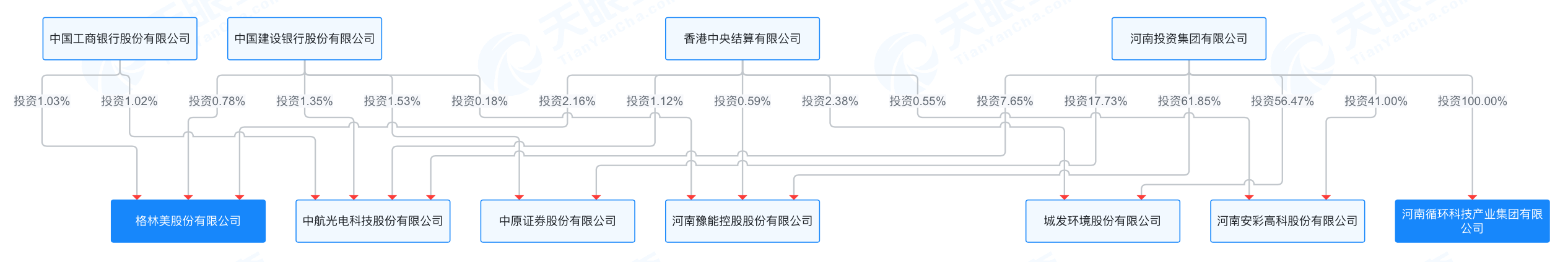 界面新闻通过天眼查穿透关系网看到,格林美与河南循环集团并未有直接的关联。