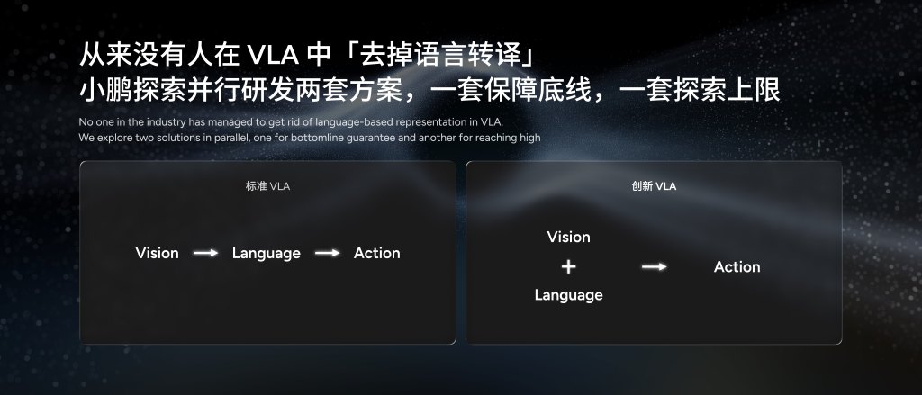 这一架构创新的意义深远。传统VLA模型采用“视觉→语言→动作”的转换流程,不仅导致大量视觉细节丢失,还增加了推理延迟。而小鹏的第二代VLA采用“视觉+语言→隐式Token→动作”架构,减少了传统VLA的语⾔转译环节,不依赖⼈类语⾔作为中间媒介,有效解决转译延迟带来的执行效果不佳等问题,让AI能够像人类一样直观感知并决策,实现了更本质的物理世界理解。