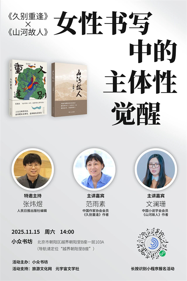 《山河故人》是一本现实主义题材的长篇小说,故事以关中平原上的南河滩村为立足点,通过讲述主人公在生活、工作、学习及情感等方面的经历,带领读者打开了解那个时代的窗口。《久别重逢》是一部自传体长篇小说,小说中,根据自身经历,范雨素塑造了女主角范菊人,讲述了范菊人在故乡成长与在北京漂泊的艰辛故事。幼时受到楚地鬼神文化的深刻影响,范菊人对院中的一棵老桑树产生了幻想,并为此踏上了一生的寻根寻魂之旅。周六下午,两位女性写作者将做客小众书坊,一起谈谈女性书写中的主体性觉醒。