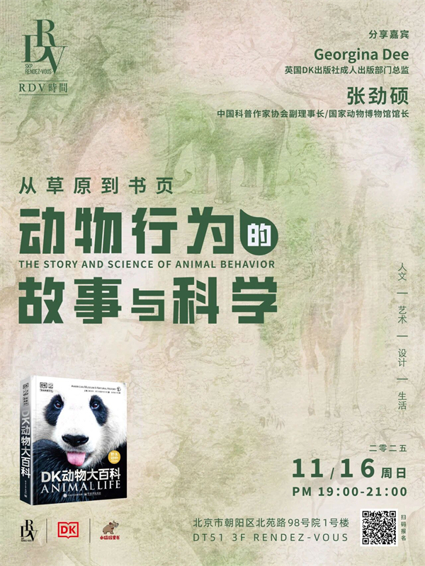 11月16日晚,我们特别邀请到英国DK公司成人出版部总监Georgina Dee,《DK动物大百科》主译、中国科普作家协会副理事长、国家动物博物馆馆长张劲硕,做客DT51。他们带着全球顶级科普出版的行业视野,以及数十年野外科考的一手经验,在这里展开“从草原到书页——动物行为的故事与科学”的对话。