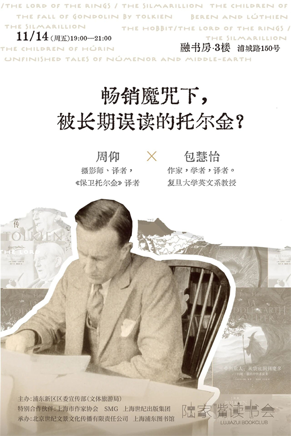 在20世纪的文学殿堂里,J.R.R.托尔金是一位特立独行的创造者。他以语言学家的严谨和诗人的浪漫,重新定义了“幻想”的意义。而托尔金的精神知己,托尔金研究领域的核心学者,自诩为“托尔金论战者”,任教牛津、哈佛等六所高校的汤姆·希比则以学者的严谨、高智和粉丝的热情与战斗力,写成了托尔金研究领域的殿堂级著作《保卫托尔金》,25万字高密度解读托尔金、捍卫托尔金。11月14日晚,《保卫托尔金》译者、精神刚铎人周仰和复旦大学英文系教授包慧怡将做客“陆家嘴读书会”。两位资深“托粉”将在现场为托尔金“辩护”,在这场对谈中,你或将发现一个被长期误读的托尔金——他远比我们想象的更复杂、更深刻,也更切近我们所处的时代。