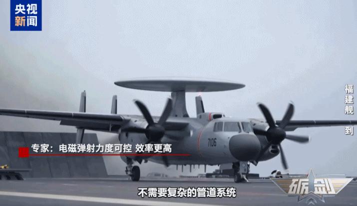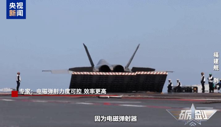 军事评论员 魏东旭:电磁弹射器不需要复杂的管道系统,占用航母内部的空间比较少。蒸汽弹射器的弹射力度不可调,可能会导致舰载机机体结构的损伤。电磁弹射器会根据舰载机的尺寸、重量,灵活选择弹射力度。