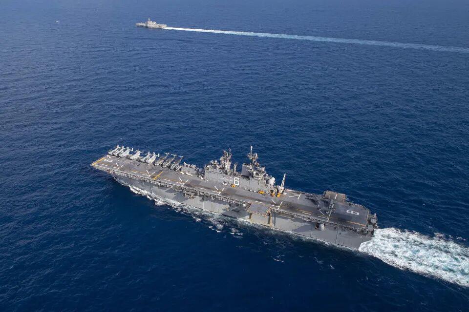 美利坚级两栖攻击舰可以垂直起降 F-35B 战机。毕竟 F-35B 是一款固定翼的五代机。因此称美利坚级为 " 闪电航母 " 并不为过。美军也经常将美利坚级设为旗舰组成编队完成一些军事任务。从某种程度上说,是替代航母而为之。最大的好处是——动用两栖攻击舰比动用航母便宜!