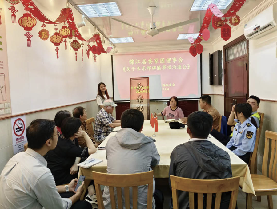 长乐邨是公房小区,无法成立业委会,以前大家关起门来过自家日子。修缮过程中,永业集团卢湾公房让渡了部分管理权利,建立以居民自治为主的“自治家园”执委会,长期租客和周边商户也被邀请进来,大家都有发言权。经此修缮,大家的主人翁意识变强了。为了让小区门头配得上百年法式洋房的韵味,大家还自发去找商家做了门牌设计。
