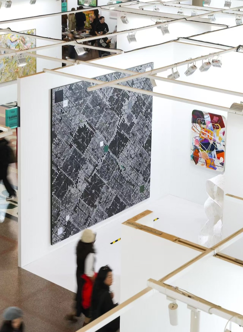 在西岸国际会展中心一楼的国际画廊阵营中,白立方画廊(White Cube)展位,安东尼·葛姆雷(Antony Gormley)2024年的铸铁雕塑《RISE II》以50万英镑成交,其2014年的《SMALL HEST II》售出25万英镑;特雷西·艾敏(Tracey Emin)的霓虹作品《An Insane Desire For You》售出17.5万英镑,其余包括《The Next Journey》《Because I Love You》《Away From The Cross》等作品也陆续成交。其他重点成交作品还包括日本艺术家白髪一雄1970年代油画《Kokuyo》、周力的混合媒介作品《Mandala No.12》等,随后几日,帕克·苏波(Park Seo-Bo)、野口勇(Isamu Noguchi)、里希特(Gerhard Richter)等艺术家的作品亦在展会期间被收藏。