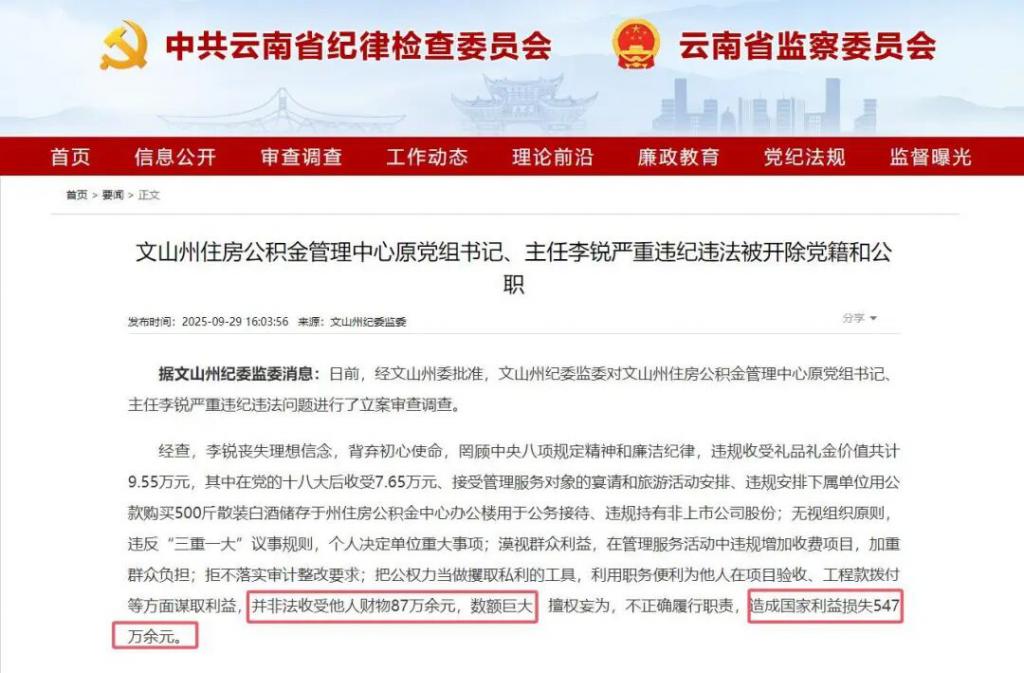 9 月底一份通报说,2016 年,时任州住房公积金中心主任的李某,让下面几个县的管理部买了 500 斤散装白酒,存放单位办公楼里,平时用来招待客人;另外,十年里贪了 7.65 万。