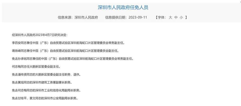 有趣的是,李百安和蒋铁峰都在 2023 年 9 月的深圳市人民政府决议中,被任命兼职 " 中国 ( 广东 ) 自由贸易试验区深圳前海蛇口片区管理委员会 ",分别担任常务副主任和副主任。