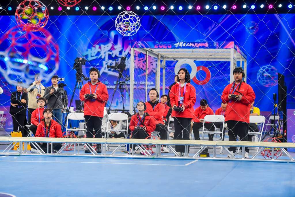 赛场之上,装有球形保护框的无人机如“空中足球”,在封闭低空场景中展开5V5或3V3的实时对抗,考验着飞手的精准操控与团队战术配合。中国队的教练组针对两大组别特点打磨出了差异化战术:F9A-A组5人制侧重协同攻防,F9A-B组3人制聚焦快速反击。此外,尽管中国队的选手年龄偏小,但已经有了不俗的赛场经验,比如七年级的金子童和八年级的吕若源,作为中国队的主力,不久前刚刚在第十五届全运会群众比赛航空模型项目中为上海队斩获了无人机足球(F9A-B)项目冠军,这也是全运会历史上首枚无人机足球项目的金牌。