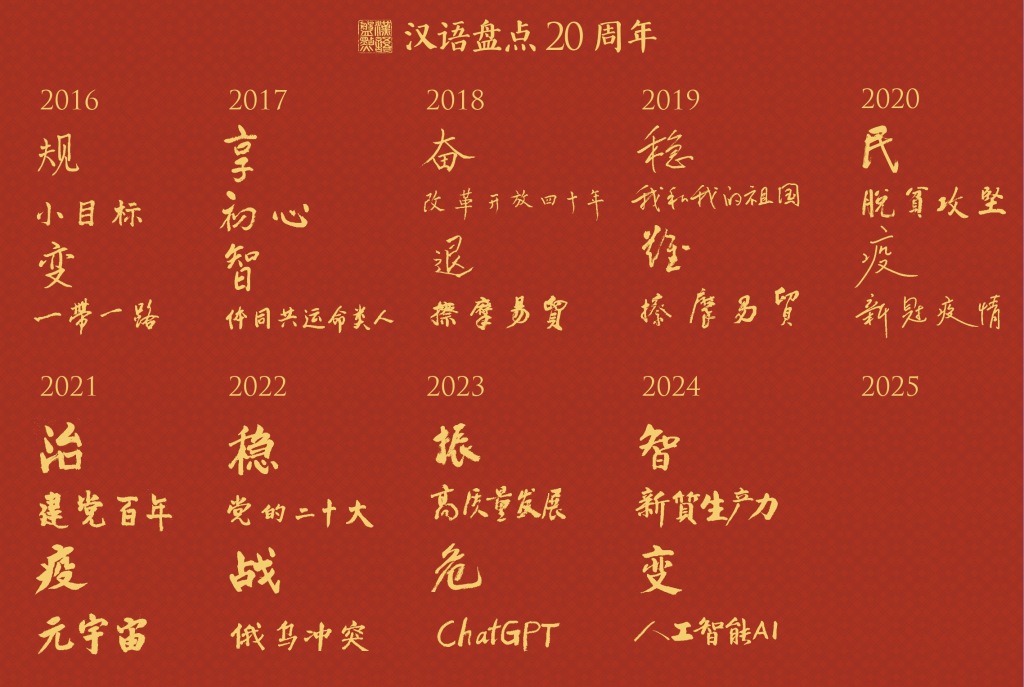 今年是“汉语盘点”二十周年,活动中也系统梳理二十年间评选出的年度字词所构成的时代切片,聚焦个体微光,共谱时代记忆。主办方介绍,在依托大数据广泛采集字词的同时,更将视角投向每一个具体个体,通过平台互动、留言精选、故事征集、深度访谈等形式,倾听广大网友选择字词背后的个人叙事与独特体验,从涓滴意念中汇聚丰富的时代情绪。此外,商务印书馆也将举办“字见二十年”线下主题展,让年度字词化为可触可感的场景,为公众打造一场身临其境的汉语文化盛宴。