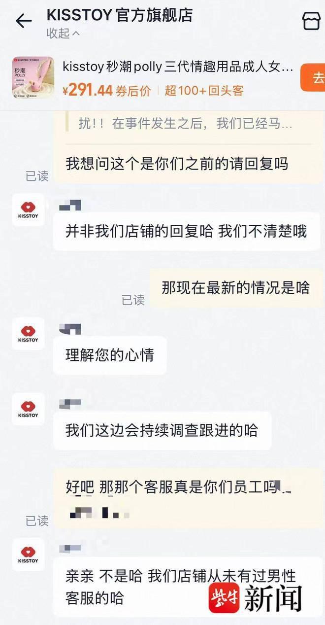 据该网友帖文,其在今年 1 月购买过 KISSTOY 品牌情趣用品,近日一位自称该品牌 " 前员工 " 的人添加了她的微信并对其进行骚扰。该网友发布的聊天截图显示,对方自称 KISSTOY 前客服," 兼职干了一段时间,不干了,客户的信息没删 ",称购买产品可享 8.5 折优惠,还可提供 " 绝对保密安全的远程控制、全国线下陪玩服务 ",并声称通过系统后台看到该网友购买商品的定位在福建泉州。该事件随后引发关注。
