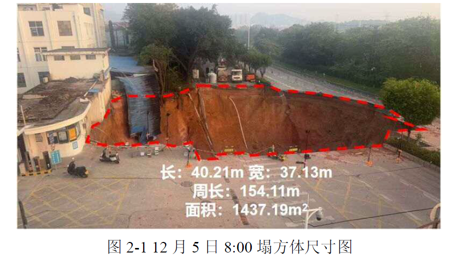 之后经过数次小规模塌陷,至12月5日8时,形成了面积1437.19㎡,体积约15000m³的塌陷坑。
