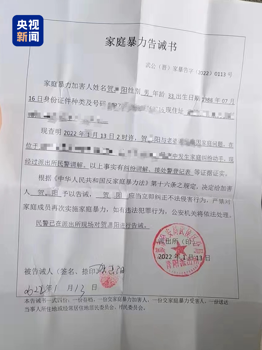 谢女士也希望,相关部门对于家暴的处置联动起来。“派出所开具《家庭暴力告诫书》后,可以通知社区、妇联定期上门,不管是对施暴者进行思想教育,还是对受害者进行回访,我觉得都很有必要。”