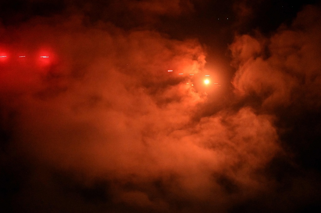 当地时间2025年11月25日,乌克兰基辅,在俄罗斯空袭期间,乌克兰防空部队向基辅上空的俄罗斯无人机和导弹开火。
