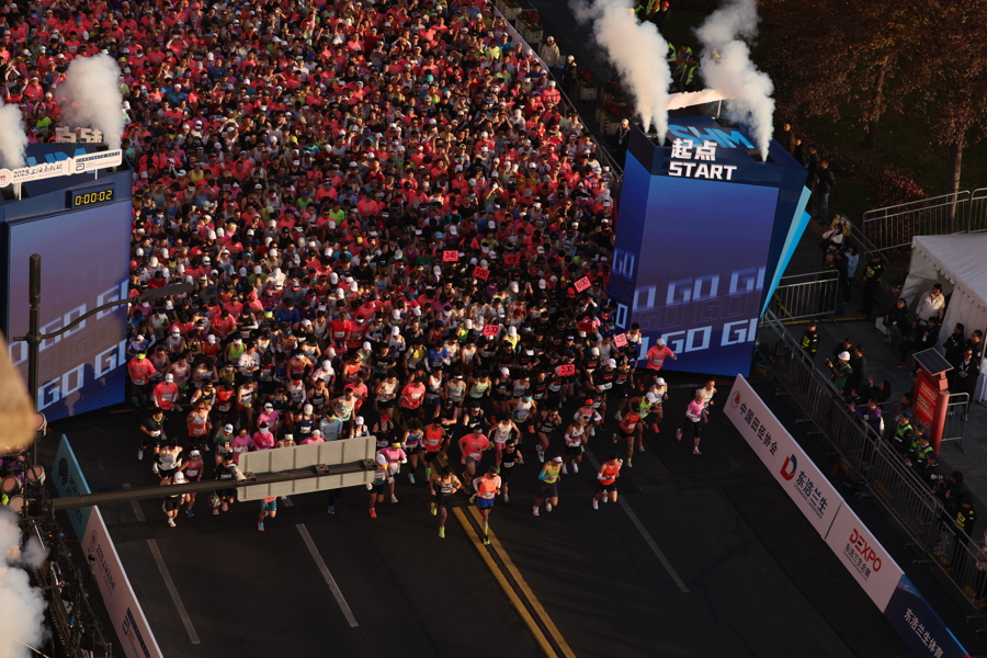 金色的晨曦洒落浦江两岸,深秋的上海被奔跑的脚步声唤醒。6时45分,19名参加竞速轮椅马拉松项目的选手率先开赛。7时,2.3万名跑者从外滩金牛广场出发,在42.195公里的赛道上感受城市脉搏。跃动身姿与斑斓秋景共同绘就一幅属于申城的活力画卷。