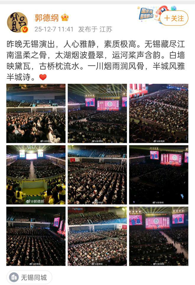 12 月 7 日上午,IP 定位显示在江苏的他,发出一条微博:" 昨晚无锡演出,人心雅静,素质极高 "。