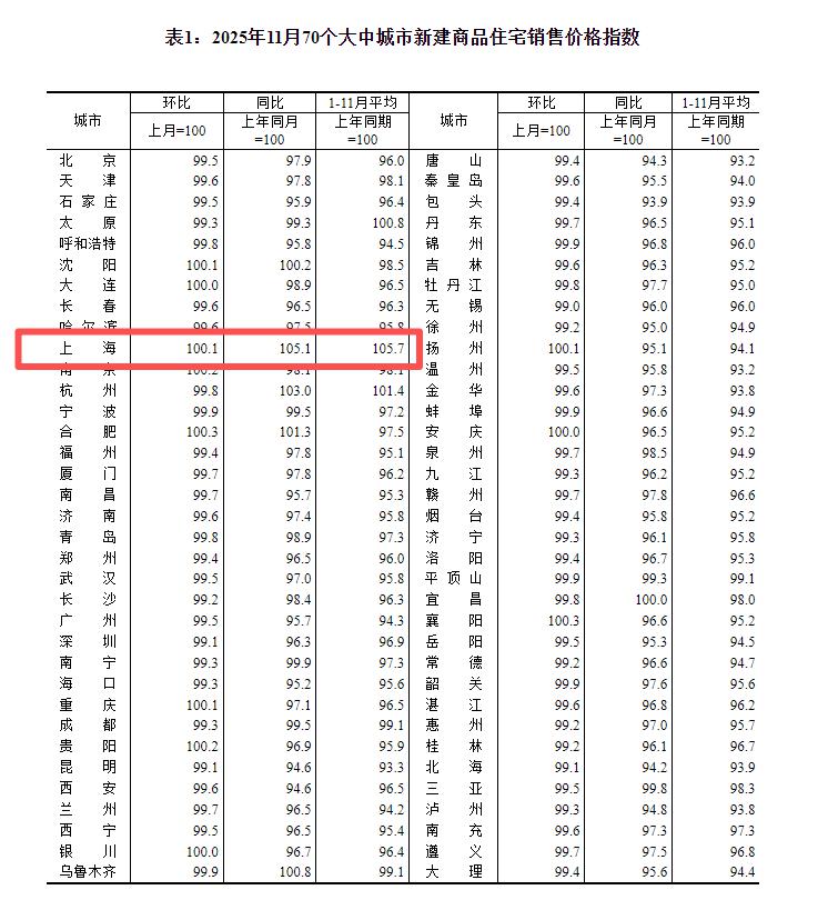 在众多城市中,上海新房价格表现依旧抢眼。11 月份,上海新房价格环比上涨 0.1%,为四座一线城市中唯一上涨的城市;同比方面,上海新房价格涨幅达 5.1%,位列全国第一。此外,今年前 11 个月,上海的新房价格均值亦领涨全国,同比上涨 5.7%。且据时代周报记者统计,这是上海新房价格连续 42 个月上涨。