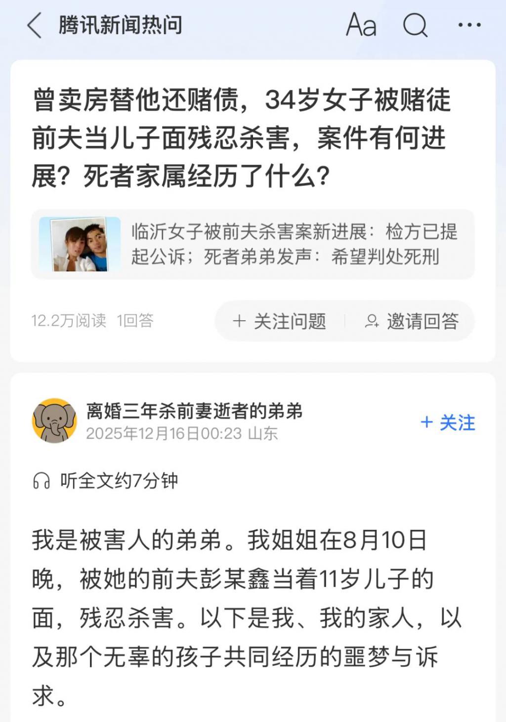 今年 8 月,山东临沂,34 岁女子在家中被已经离婚三年多的前夫彭某鑫残忍杀害,并且是当着两人亲生的 11 岁儿子的面,该案件曾引发社会关注。近日,家属称检方已经提起了公诉。