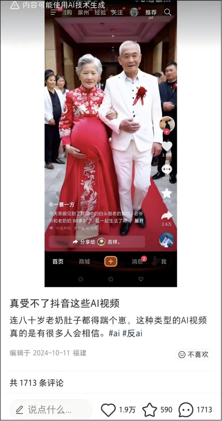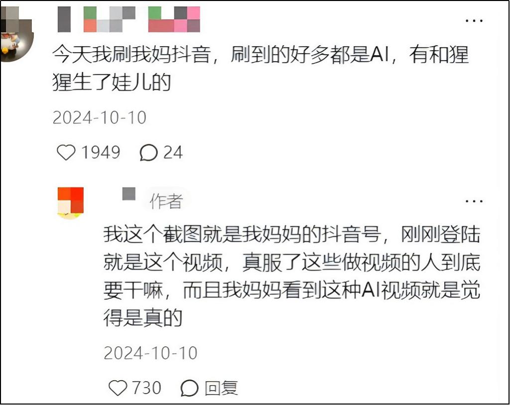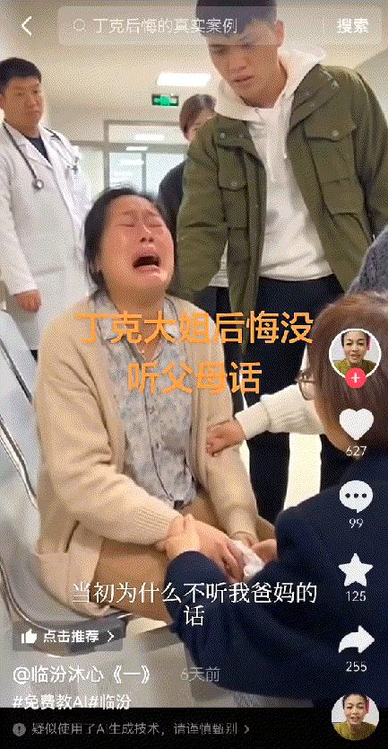 但发言者可能不知道这些视频是 AI 生成的,并没有他们想象中的真人真事。