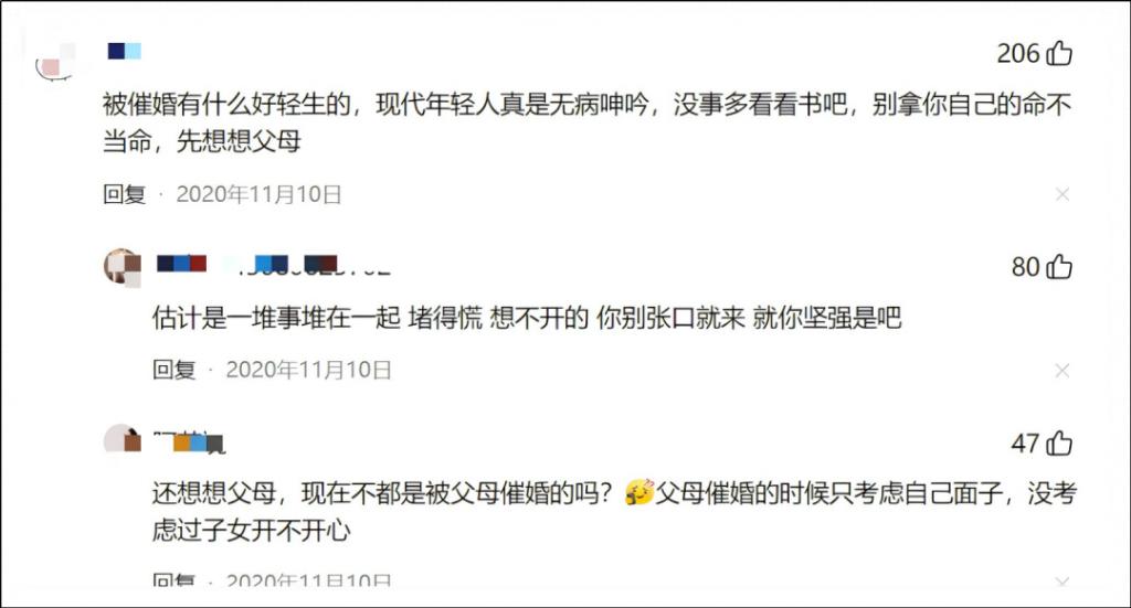 在结婚压力和现实困境下,有的年轻人会崩溃,甚至想不开。
