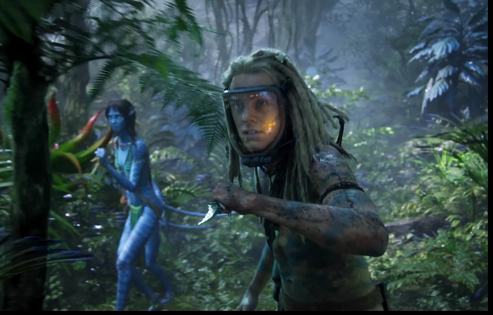 这一叙事在后两部得到延续。随着萨利成为纳威人,卡梅隆透过另一个人类养子“蜘蛛”进一步拓宽了这一身份张力。与萨利不同,“蜘蛛”需要长期依靠面具来维持呼吸,同时,人类的外表和体格也使他在部落中时常显得格格不入,甚至受到养母奈蒂莉的敌意。卡梅隆在这里抛出新的问题:如果你们能接受变成纳威人的人类,那真正的人类呢?