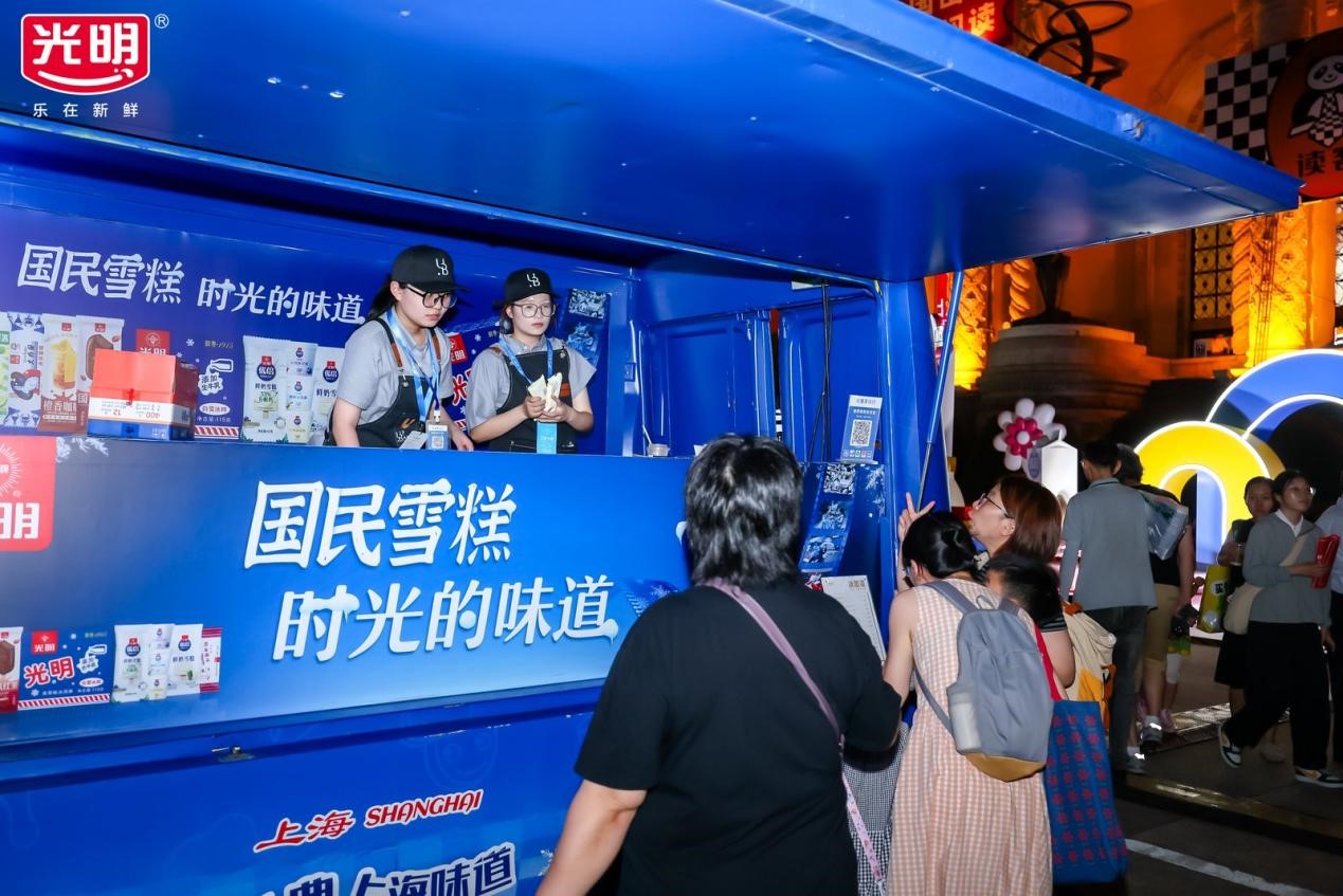 而在上海书展上,光明乳业不仅为“能量补给站”提供乳品,还特别推出“光明×上海之夏”沪语棒冰,“来白相呀”“兜马路期哇”这些极具上海味道的方言印在包装上,许多家长和孩子一边吃冰棒、一边学习沪语,文化体验与产品体验自然叠加,形成文化向消费转化的又一次柔性推动。