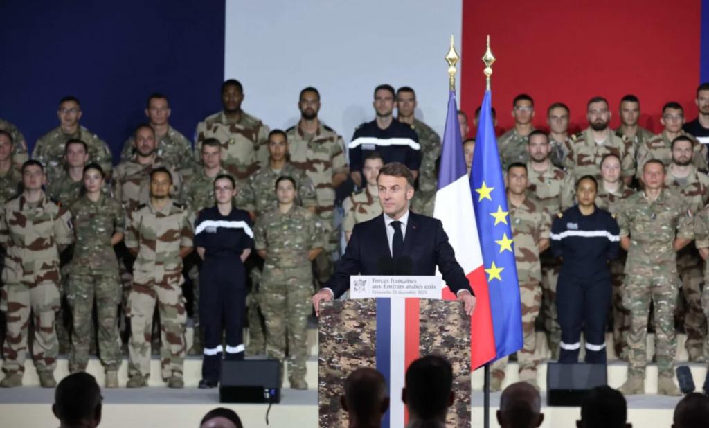 12 月 21 日,马克龙在阿布扎比法军基地宣布将建造新型航母。