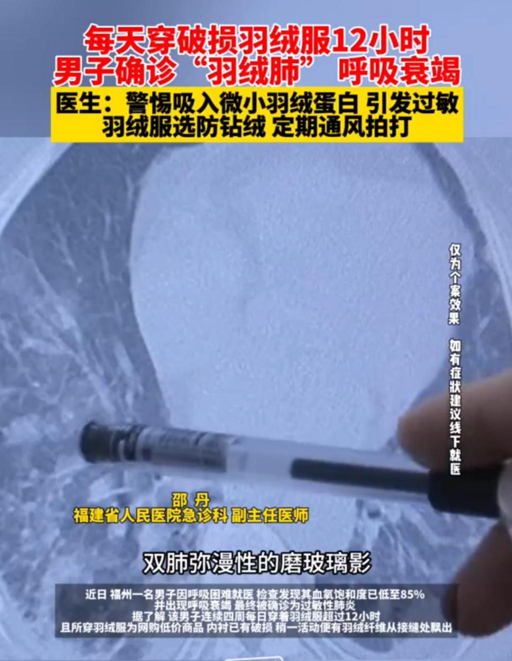 羽绒服“漏绒”致呼吸衰竭!医生:警惕“羽绒肺”