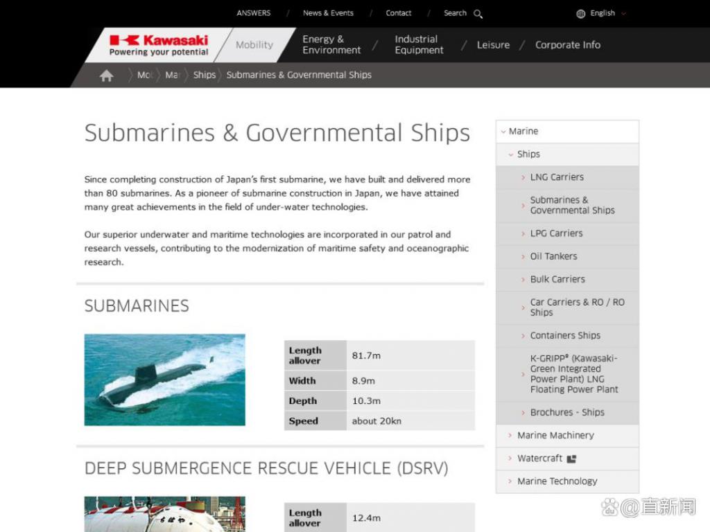 川崎重工是日本重要的军工企业之一,主要生产潜艇、飞机和导弹等大型装备,同时也是日本两大潜艇制造企业之一(另一家企业是三菱重工)。有资料显示,日本现役的潜艇中,大约一半是由川崎重工制造。
