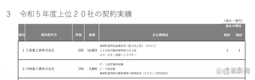 以上截图分别来自日本防卫省装备厅 2024 财年及 2023 财年的采购报告,其中显示川崎重工的合同金额分别 6383 亿日元及 3886 亿日元。