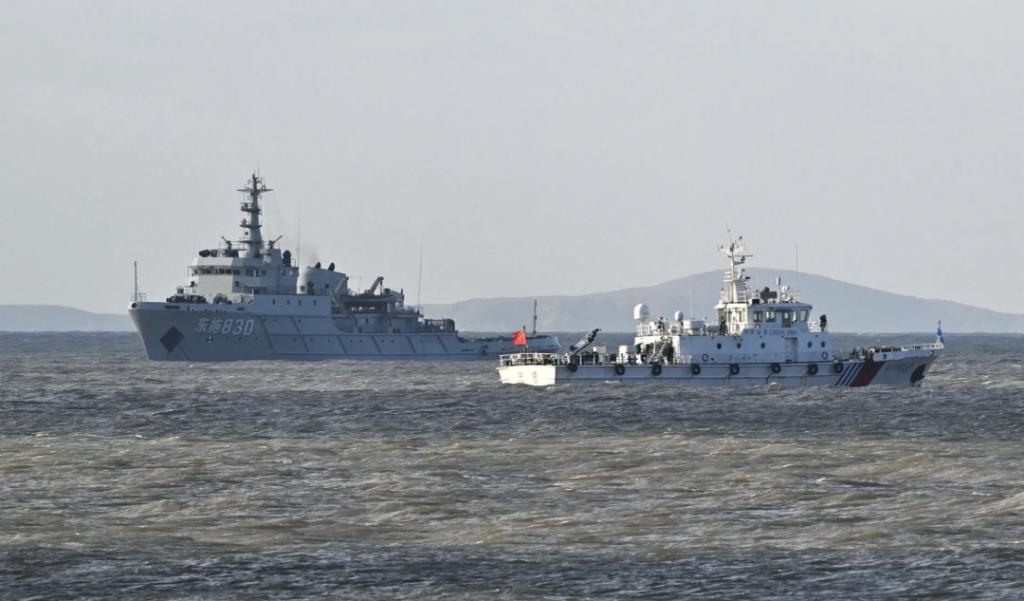 ▲周二军演期间,中国军舰在平潭岛附近巡逻。(图源:法新社)