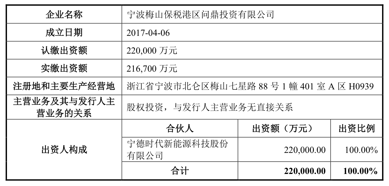 双方的绑定关系远不仅于此。2021年12月,宁德时代全资子公司宁波梅山保税港区问鼎投资有限公司通过增资成为恒翼能股东。发行前,问鼎投资持有公司5.96%的股份,为第四大股东。