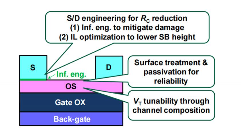 图 2: 用于优化 n 型 OS 晶体管性能的策略示意图。