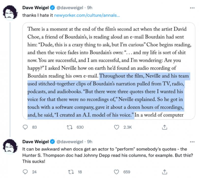 带来的连锁反应是,观众们开始对整部影片内容产生怀疑,因为大家无从判断是否还有更多声音或画面来源于 AI,而非真实存在。