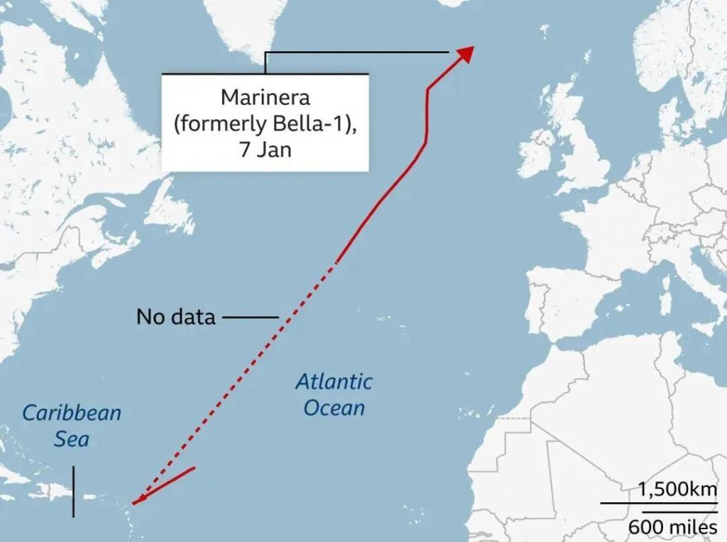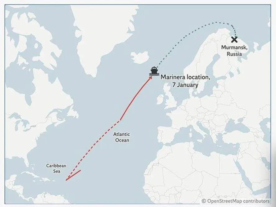 从12月21日在加勒比海域首次被抓捕未果那一刻起,他们就知道自己是猎物。这艘满载原油的巨轮,原本的计划是抵达委内瑞拉,装满重质原油。