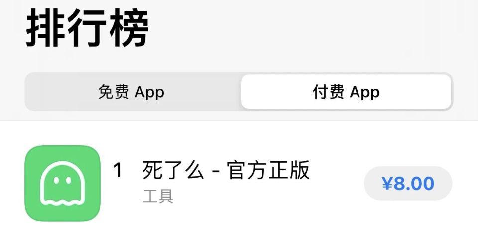 1 月 8 日,苹果应用商店一款名为 " 死了么 " 的 App 受到关注。截至发稿时,该款 App 在苹果付费软件排行榜位列第一。