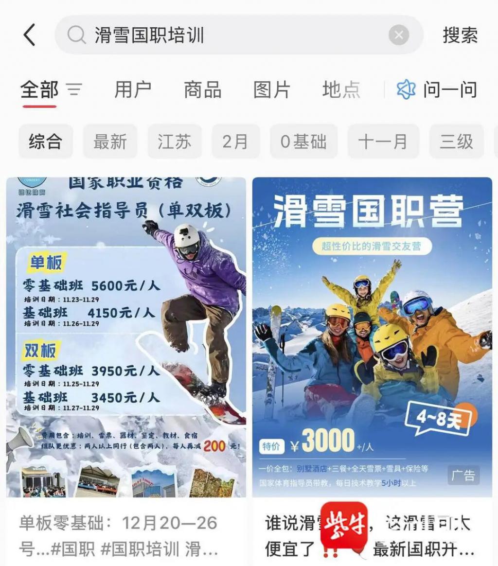 " 四天培训,一天考试!就能拿到滑雪国职证书!" 凛冬已至,冰雪运动持续升温,滑雪成为众多爱好者寻求运动刺激的首选,滑雪教练岗位也随之成为备受追捧的 " 香饽饽 "。一节一对一滑雪私教课的费用高的能达到 1200 元,一般价格在 400 至 600 元,从业者在雪季的收入颇为可观。紫牛新闻记者调查发现,社交平台上涌现出大量 " 滑雪国家职业教练证书 " 的培训宣传,不少机构声称学员仅需 5 天就能通过考试拿证。