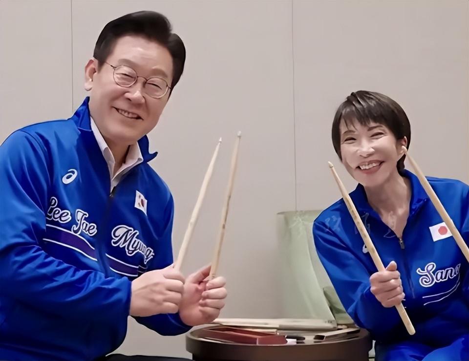 李在明和高市早苗穿上同款蓝色服装,一起打架子鼓,韩媒:该活动日方没提前打招呼