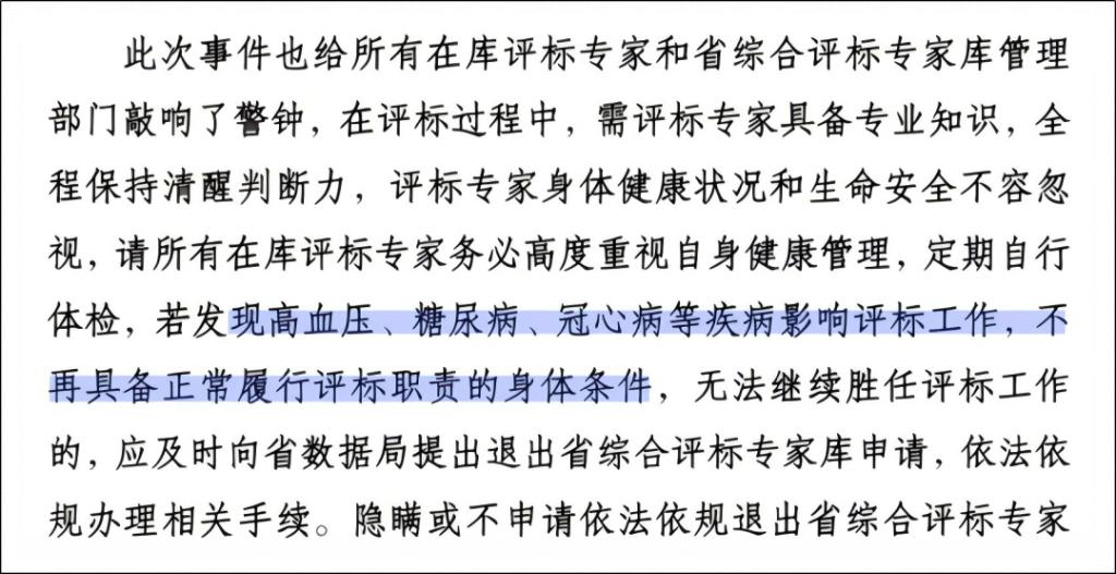 最后当然要说,这次事件给以后敲响了警钟,以后评标也要评评专家的健康状况。