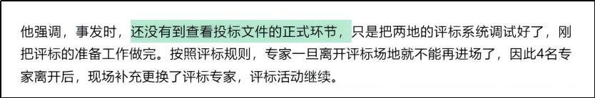 但当时远未开始评标,甚至都没到专家查看投标文件的环节。
