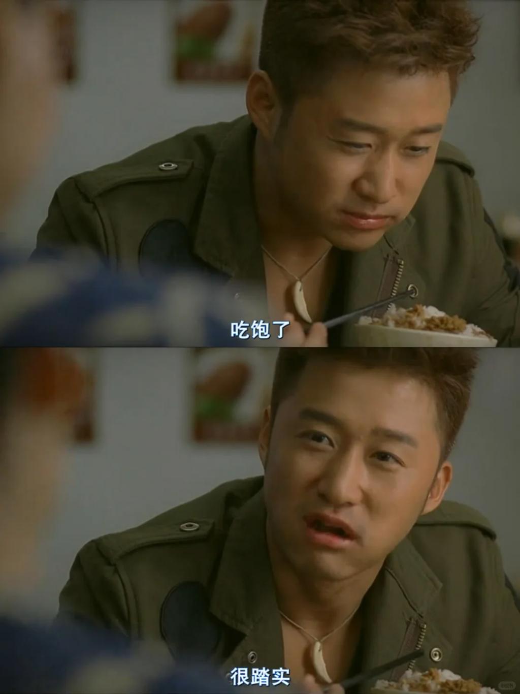 吴京的《狼牙》,就有句流传甚广的台词叫:" 吃饱了,很踏实。"